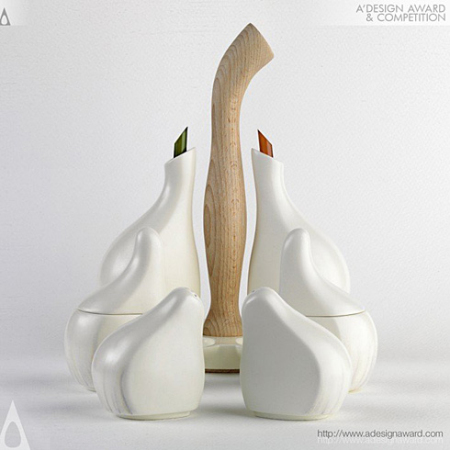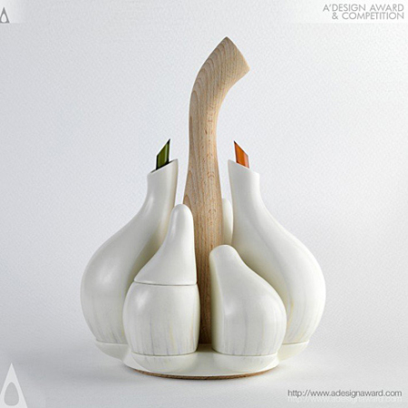 蒜瓣调味瓶是一款一目了然的厨房小工具,蒜瓣造型的洁白陶瓷瓶铺以白色布袋和细绳,像极了日常调味所用的大蒜。一套为六只,带瓶塞的适合醋、酱油等液体调料,而顶部带孔的则可用于放置胡椒、盐、辣椒粉等。