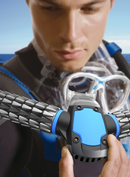 关于水下便携呼吸器的概念早在各种科幻电影中就有所见识,不过,电影里的产品都有那么些不切实际。韩国设计师提出的这款水下呼吸器或许在体积、结构与功能上要更有现实可能性,它的两根树枝形结构可将水快速分解(或提取水中的氧气),中间的装置则用来将氧气恢复正常压力以供人体呼吸。呼吸器内置新型大容量电池,而且其充电速度十分之快。有朝一日此产品上市的话,相信会有很多人也要加入探索海洋的大军了吧。