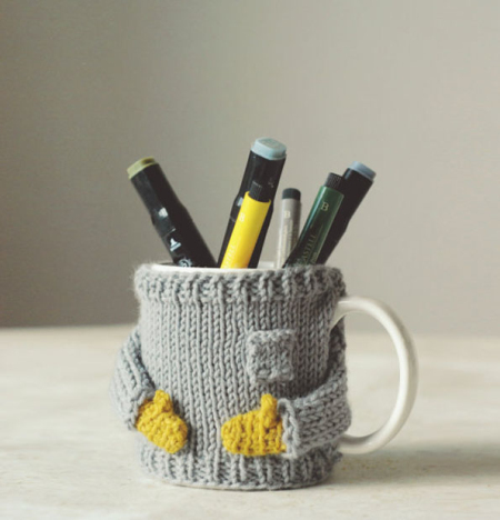 如此可爱的咖啡杯毛衣简直让人“不忍直视”,萌萌的小胳膊,撞色的小手套,每次喝咖啡都会充满爱意地,不由得端详着看很久吧~售价7美元起。