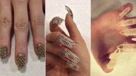 在美甲店做指甲美容早已过时啦,国外一对姐妹正在网上兜售她们的美甲创意,与众不同的是,这些美甲装饰全部由3D打印机限量制作,并且是姐妹俩亲自设计,时尚范十足,而且相当惹人注目,更重要的是,它不会像指甲油那样对身体产生副作用。
