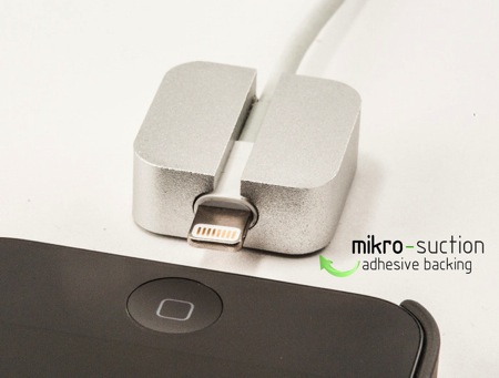 这个为8-pin充电接头设计的小巧Dock可以随时吸附在任何平坦平面,如木材、陶瓷、玻璃等,这要归功于它底部由若干微小坑洞组成的“粘性”材料,这种材料能够吸附、分离上百次而保持良好性能,而只要用水清洗一下便“焕然一新”。有了这个小玩意,充电端口的电线便不会那么容易坏啦。【视频】