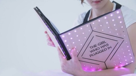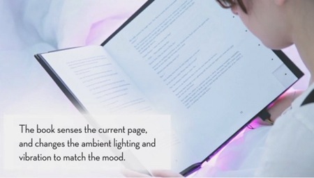 这套名为“可穿戴书籍”的系统当然不是把一本书穿在身上、随时拿出来读的那种啦,而是读者身上穿有各种感应器与传感仪,它们可以监测身体的各种神经或心率变化,进而控制书上LED灯的颜色与亮度以及穿戴在身上的感应器等。比如,读到十分虐心的情节,神经的紧张会让LED灯产生一种沮丧的氛围;读到恐惧的部分,胸部的感应器会紧缩,致使胸腔产生压迫感,从而创造更加逼真的读书体验。【视频】